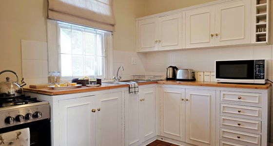 The cottage has 2 full en-suite bedrooms; one twin room and one with a king size bed. The rest of the space includes a lounge, fully equipped kitchen, a dining room and a guest loo. Complimentary tea, coffee, rusks and drinking water is supplied during your stay.